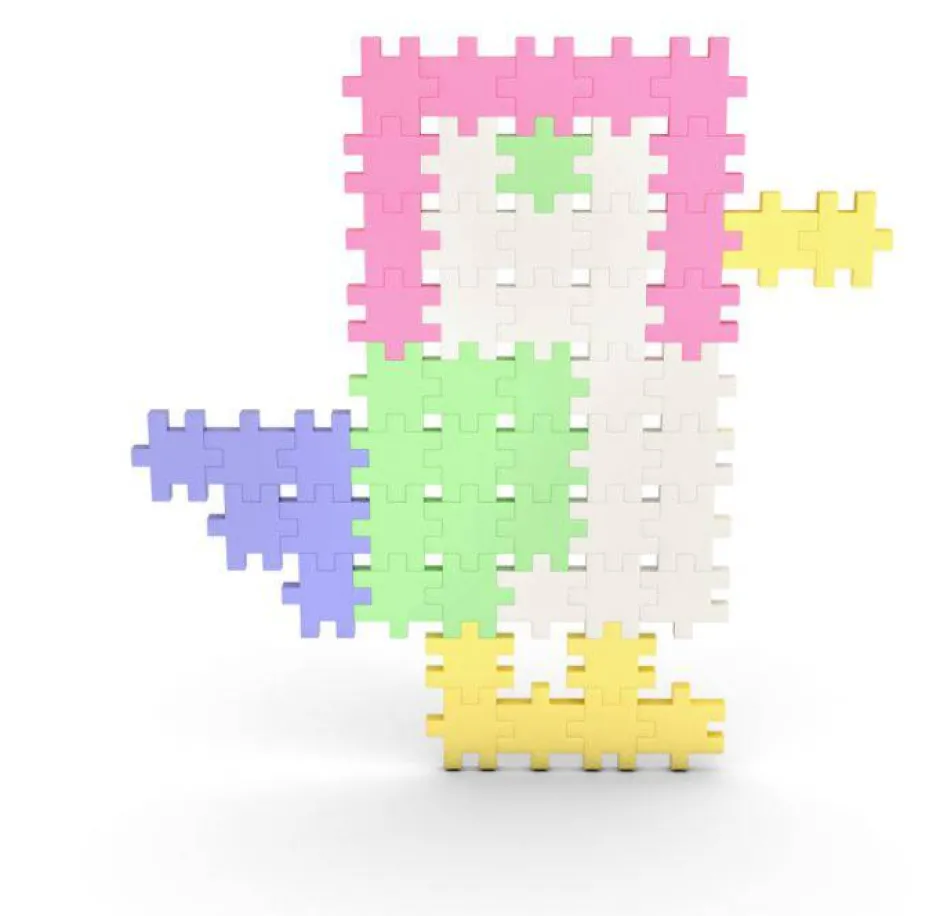 La forma de las piezas, que son similares a las de un rompecabezas, y sus variados colores atraerán la atención de los niños. Se pueden usar para hacer tanto diseños 2D como 3D.