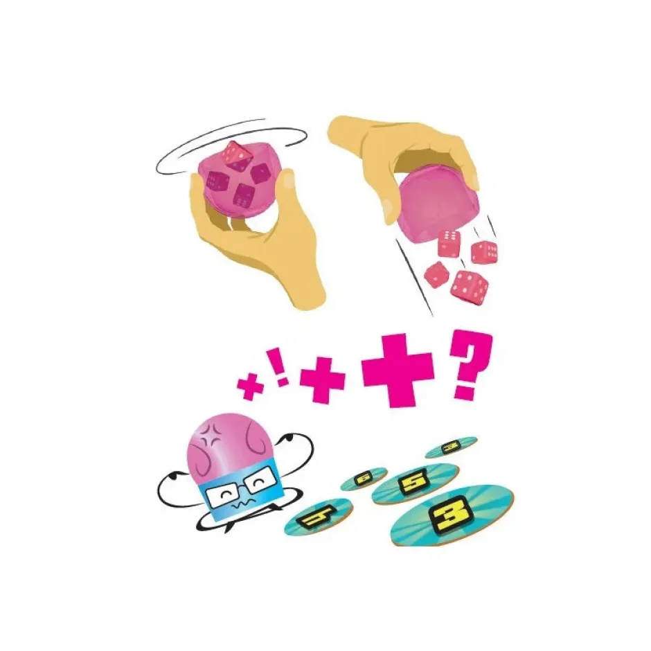 Se despliegan 10 cartas en la mesa, se lanzan los dados e inmediatamente todos deben intentar coger las cartas que coincidan con los números de los dados. Puede ser el número del dado o la suma de dos o más dados. Se juegan todas las cartas y, al final, el que haya conseguido más, gana. Sencillo y ¡adictivo!
