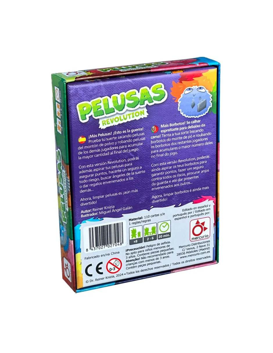 Llega la nueva versión para todos los amantes las adorables pelusas. No sólo añade cartas con brilli brilli, sino más pique e interacción entre los jugadores y jugadoras con cartas especiales: para restar puntos, aspirar pelusas, regalos envenenados entre otras. Si pelusas te gustaba este no puede faltar, aún más divertido.