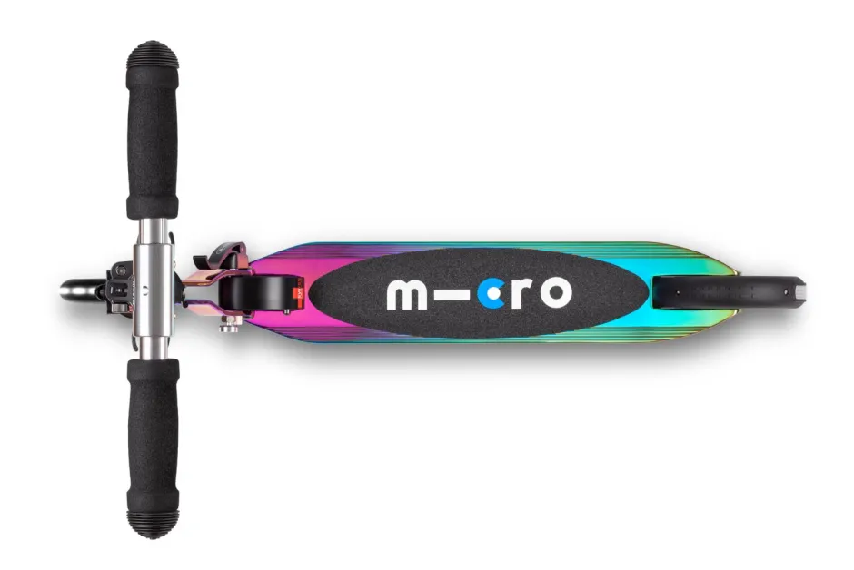 El nuevo Micro Neochrome LED combina el estilo clásico del patinete Micro con la modernidad de su color camaleón.
