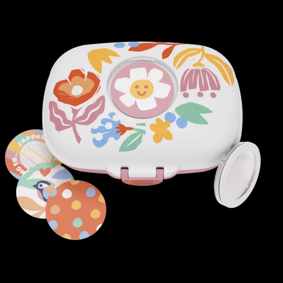 ¡Para volver su tartera totalmente única tenemos el escondite para pegatinas del MB Gram! Con motivos intercambiables, podrá decorarse con el nombre de su pequeño propietario o con el retrato de su héroe preferido. Gracias a este módulo de personalización, ¡olvídate de los riesgos de intercambios desafortunados de bentos en el recreo!