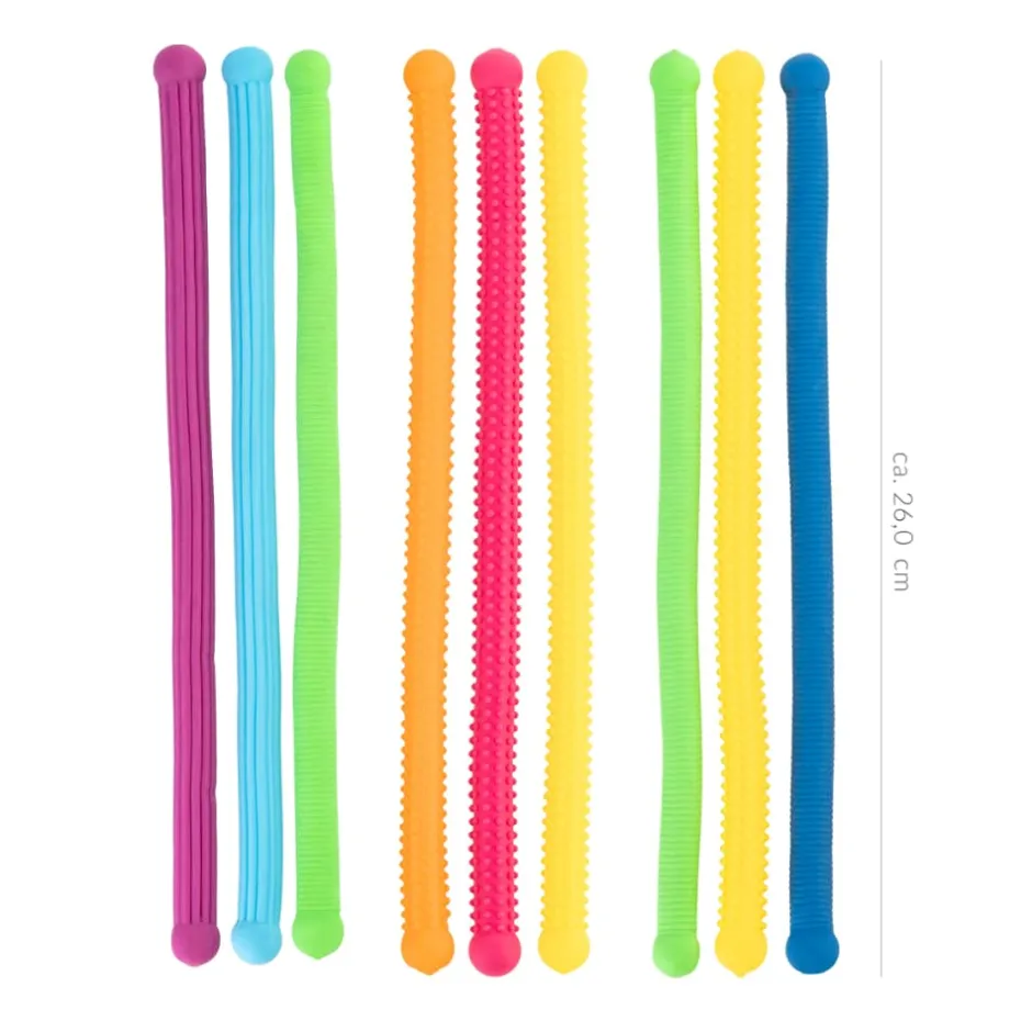 Cuerdas sensoriales de silicona extensibles con diferentes texturas. El paquete contiene 3 cuerdas.