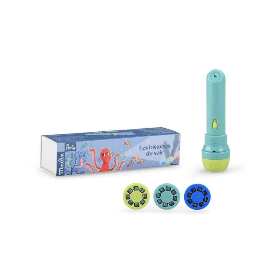 Contiene 1 linterna y 3 discos de historias.