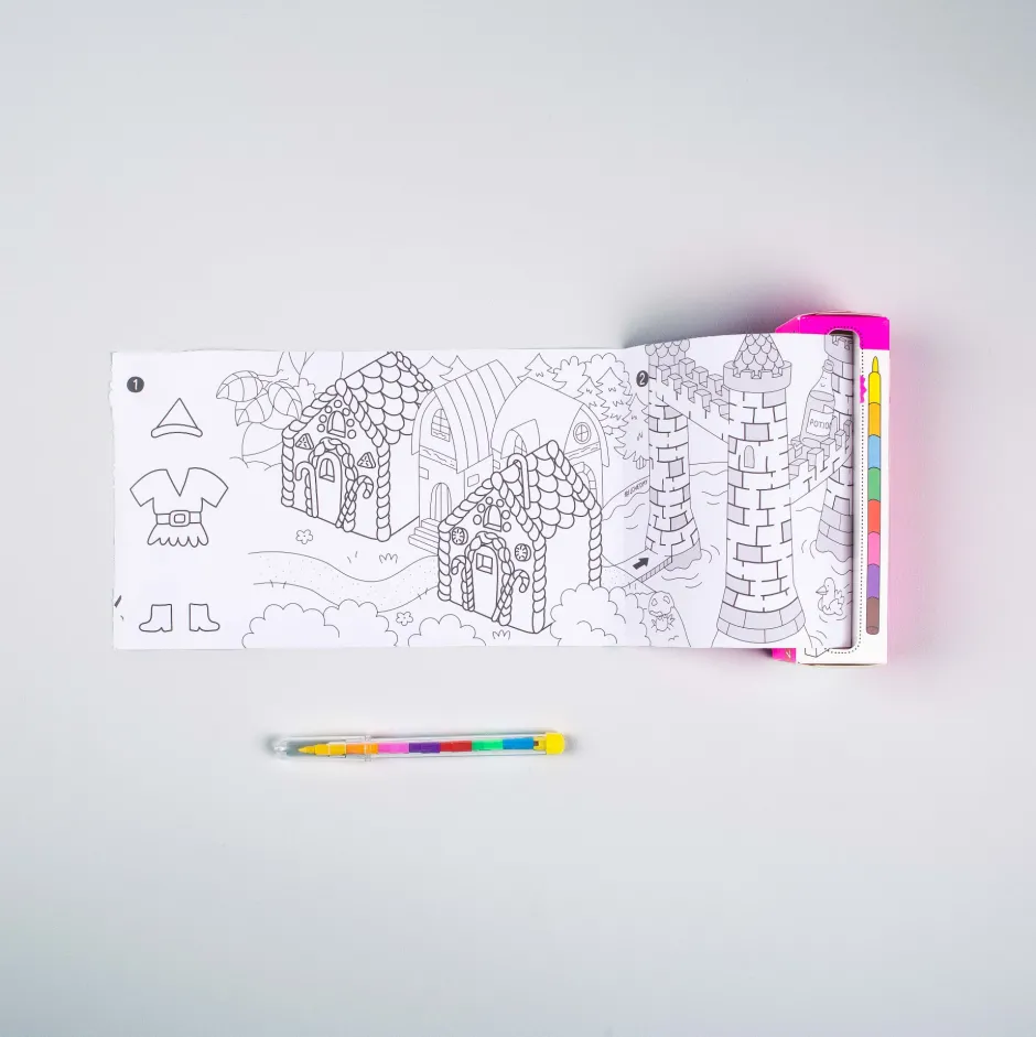 Este ingenioso juego de bolsillo de 1 metro de largo, lleno de pistas, actividades y colorantes + 1 crayón multicolor.