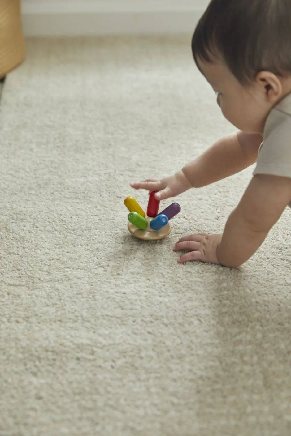 Este juguete que se adhiere a la palma de la mano está diseñado para caber en la mano de un niño. Las divertidas piernas se mueven cuando son pellizcadas y presionadas. Estimula a los bebés a practicar agarrar objetos para desarrollar unas palmas y unos dedos capaces. Este juguete captará la atención de los bebés y les brindará una experiencia sensorial y táctil..