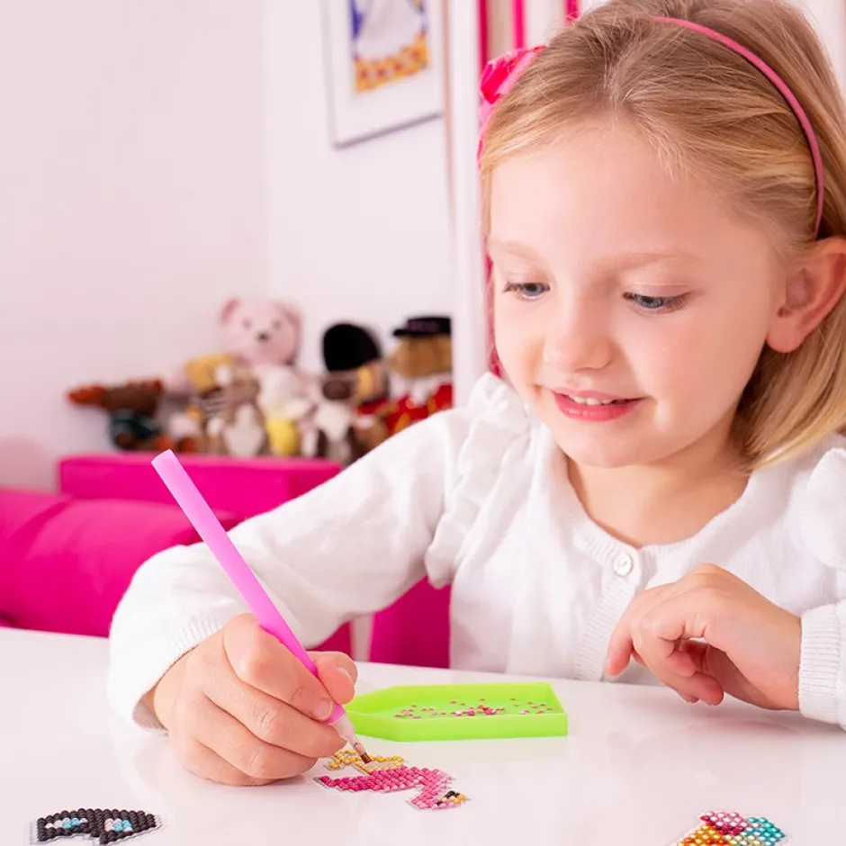 Con este kit creativo Diamond Stickers, crea magníficas pegatinas con forma de piña, unicornio, fresa e incluso helado.