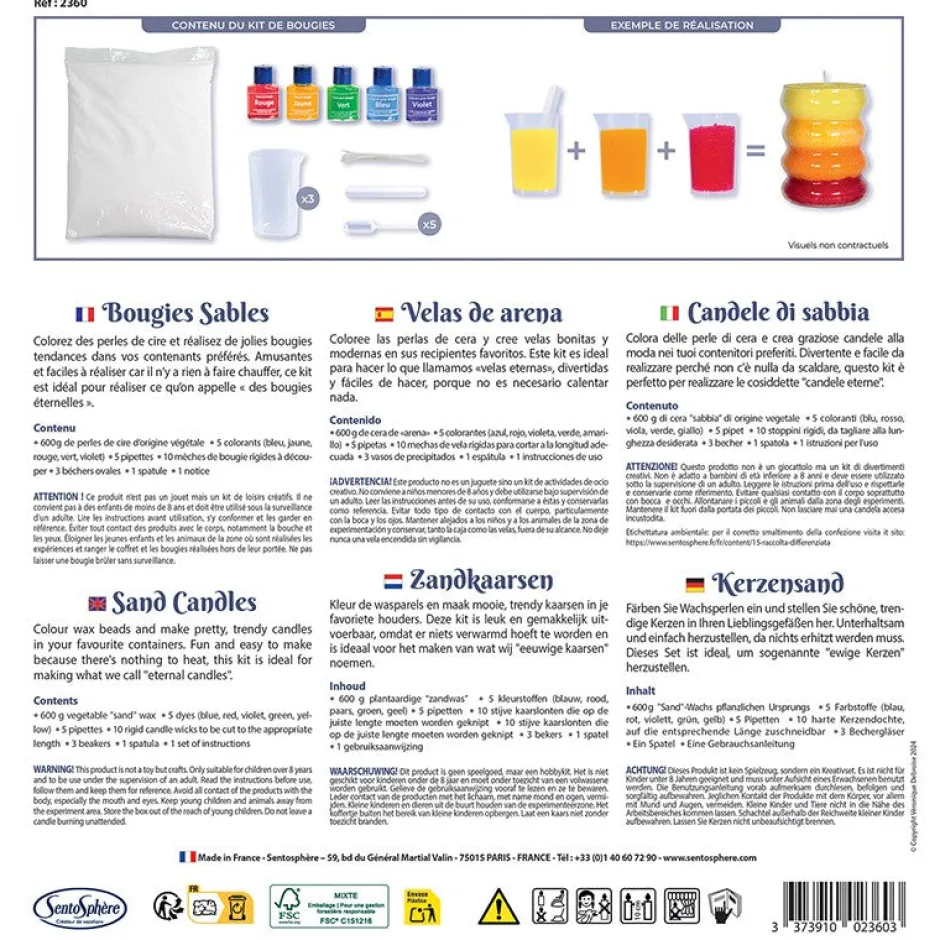 Este creativo kit «Sand Candles» te permite crear fácilmente bonitas y coloridas velas a partir de cera vegetal con arena, ¡tan fácil de manejar como la arena!
