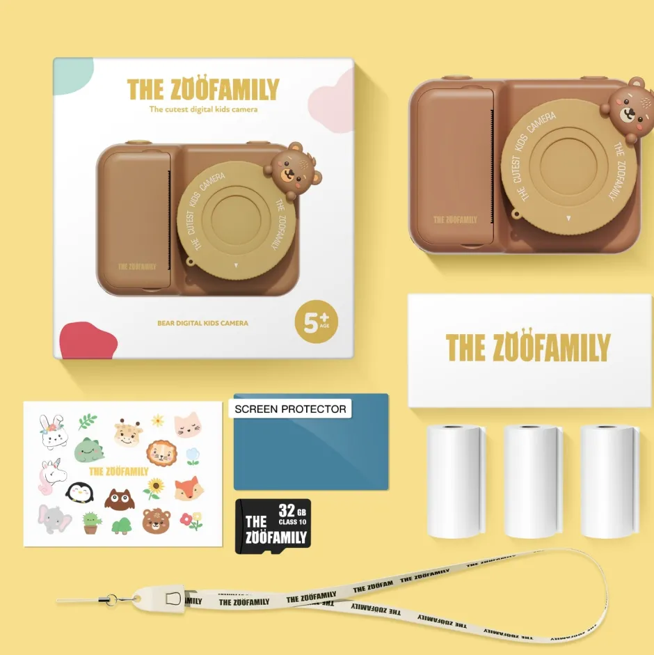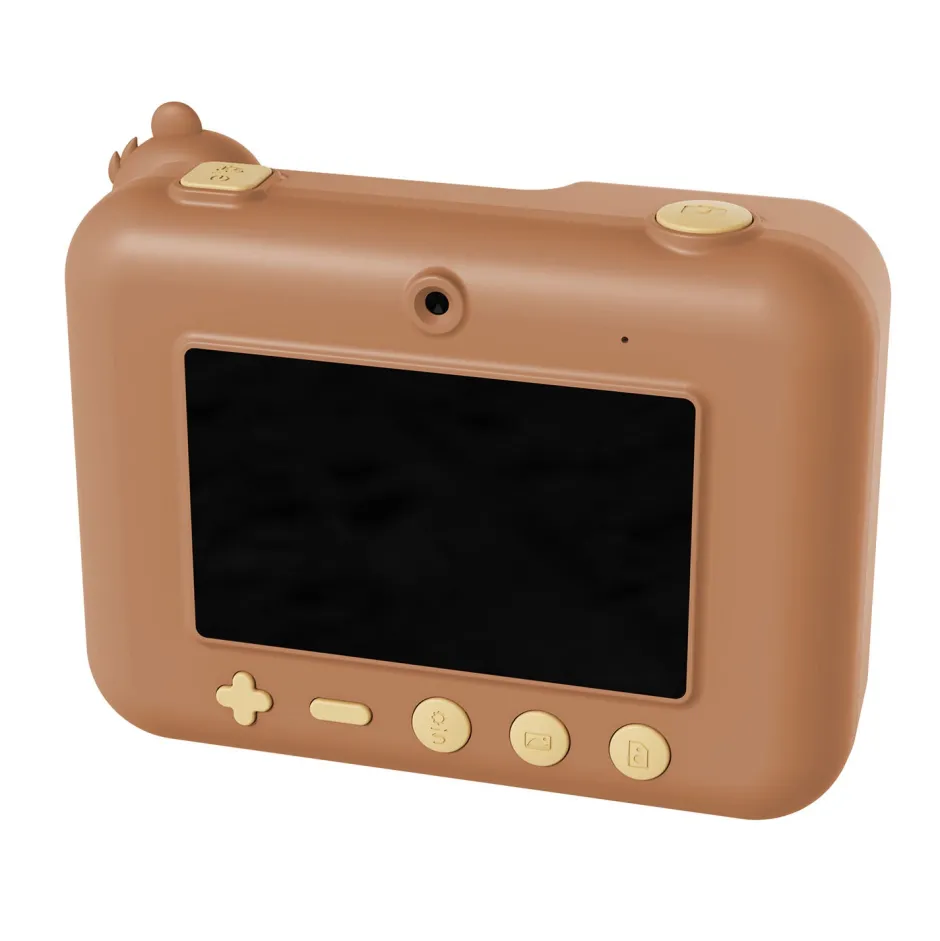 Te presentamos esta elegante cámara instantánea en forma de animalito para niños Esta adorable cámara instantánea imprime fotografías en blanco y negro directamente desde la cámara o las guarda para imprimirlas más tarde. Cuenta con una brillante pantalla a color de 3 pulgadas, protección de lente y buena resolución de impresión.