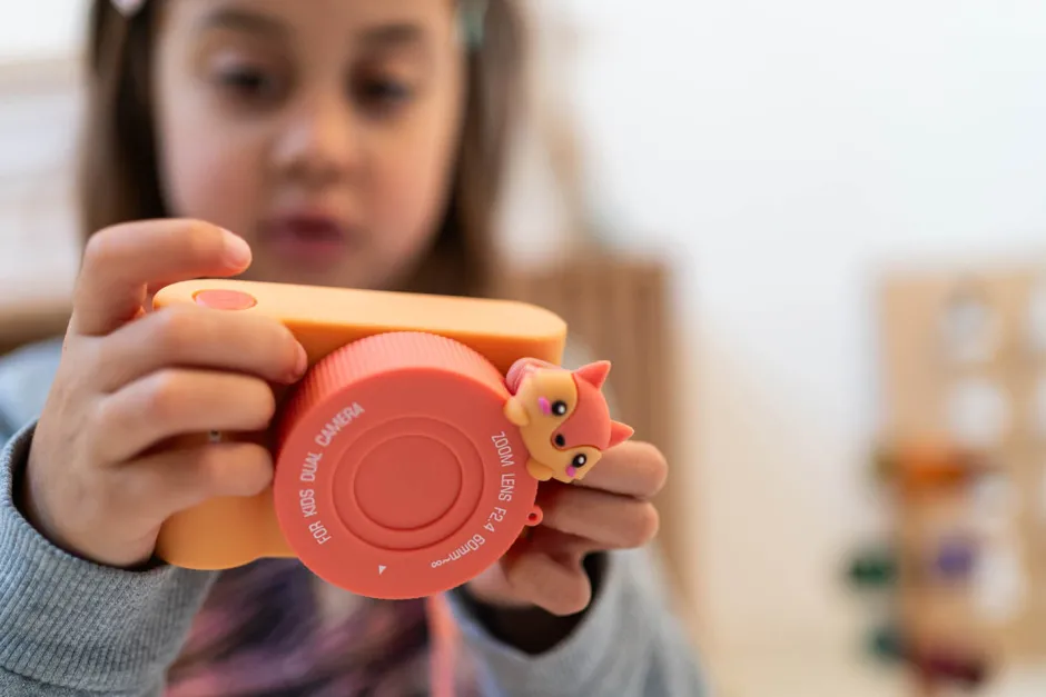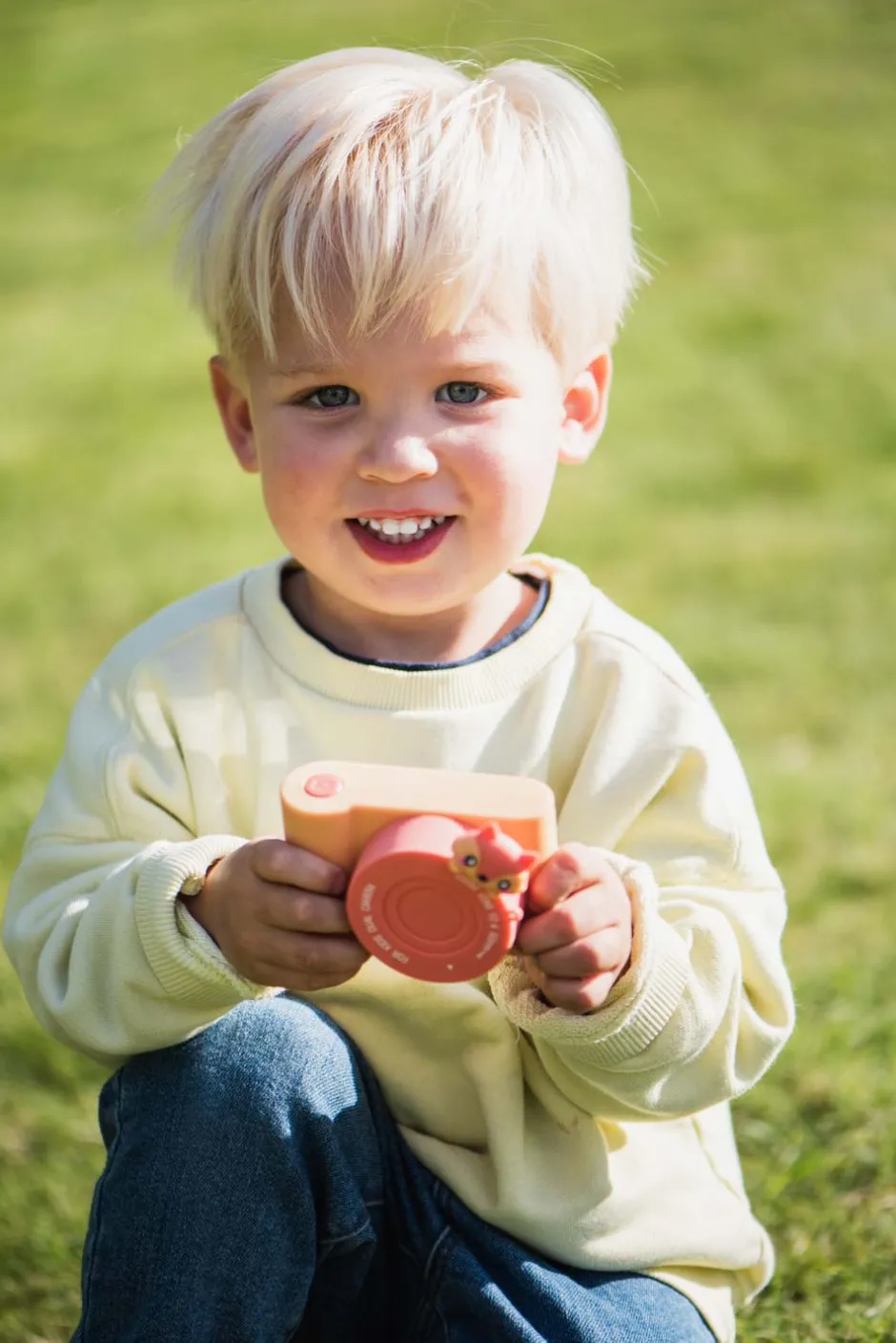 Su primera cámara. Esta cámara digital hace fotos y graba vídeo. La cámara digital infantil de The Zoofamily es extremadamente bonita, pequeña y liviana. Además, podrán imprimir sus fotos al instante, siempre que quieran.