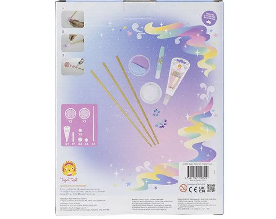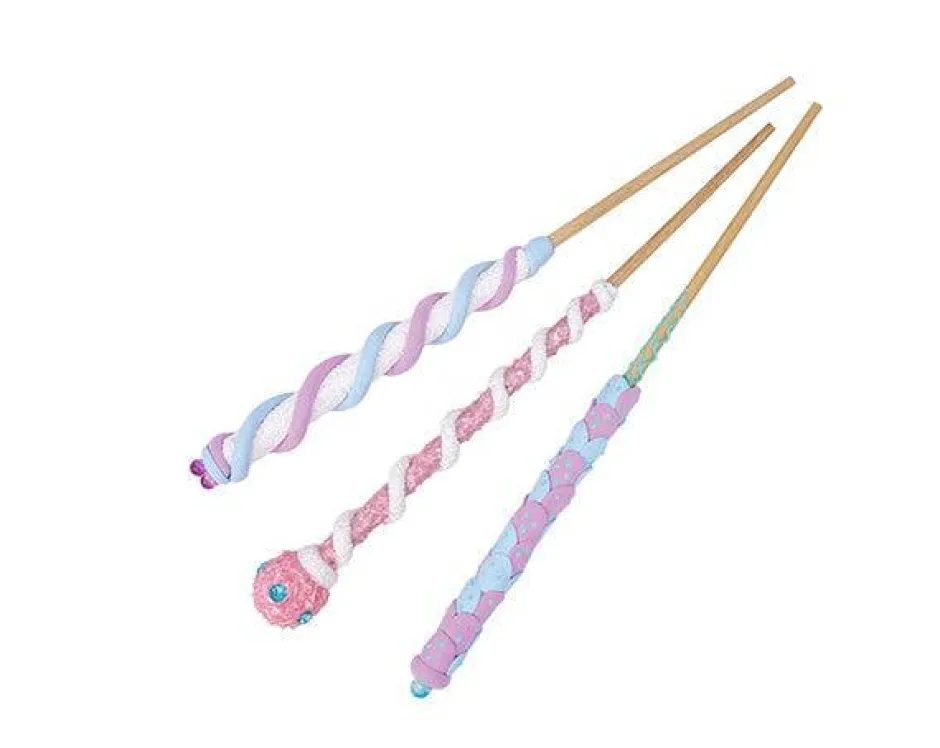 Este kit contiene las herramientas necesarias para crear 3 varitas mágicas llenas de joyas.