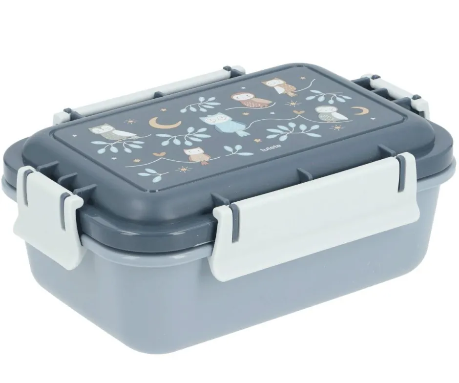 Fiambrera bento para llevar almuerzo al cole y con una cajita interior separadora, con un tenedor, para llevar también la fruta..