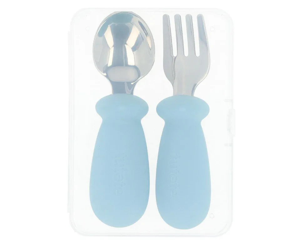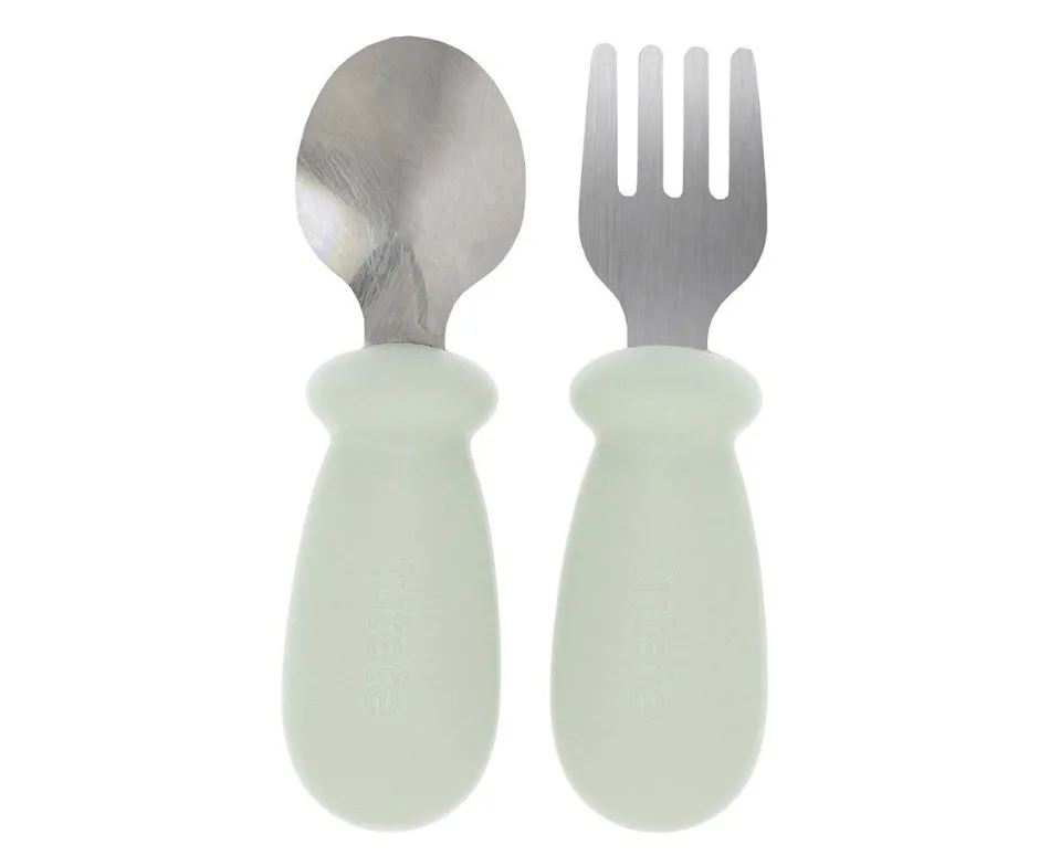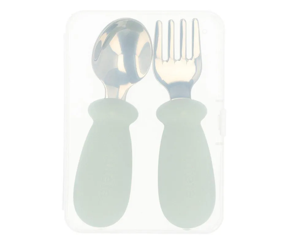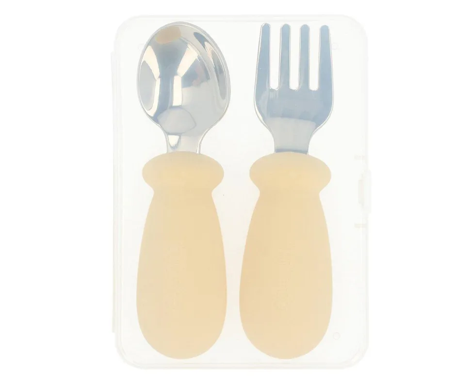 Set de cubiertos formado por 1 tenedor y 1 cuchara perfectos para Baby-led Weaning . Cuentan con mangos ergonómicos redondeados para que los peques los puedan agarrar fácilmente, además son duraderos y con extremidades redondeadas.