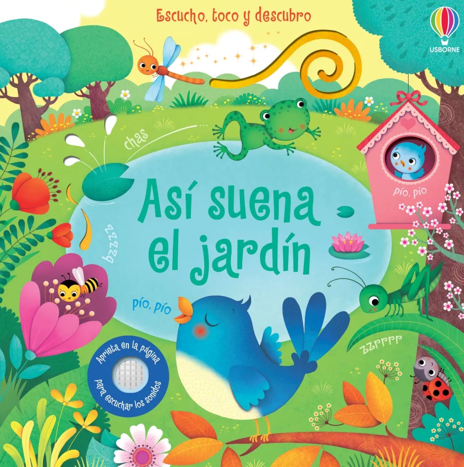 Este maravilloso libro sonoro cautivará a los más chiquitines. Apretando los botones que hay en cada página, los niños oirán los alegres sonidos de un jardín lleno de vida y maravillosamente ilustrado a los largo de todo el libro. El canto los pájaros, el zumbido de las abejas y el murmullo de la llovizna son algunas de las maravillas que descubrirán.