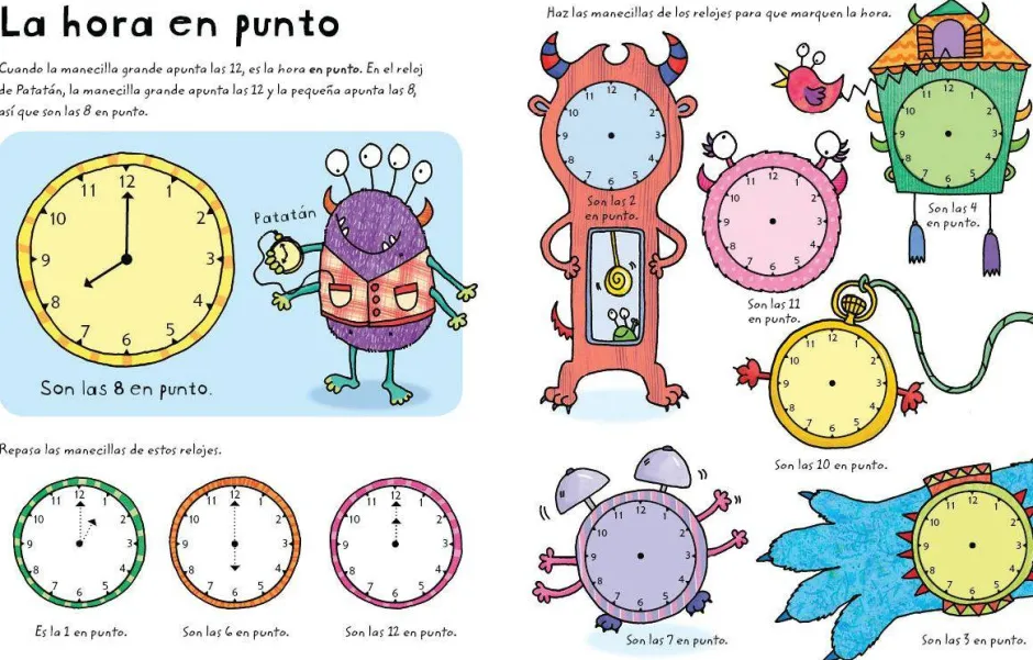 Un libro pizarra a todo color con un rotulador borrable para que los pequeños aprendan a decir la hora.