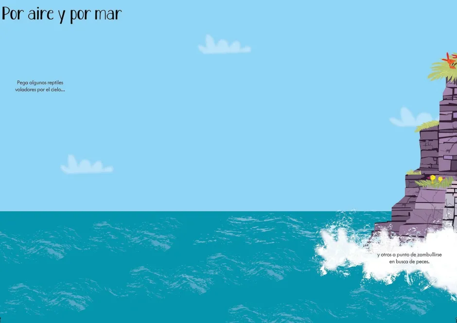 Un libro compacto con escenas prehistóricas llenas de acción y color que los niños se divertirán completando con más de 200 pegatinas reutilizables a la vez que mejoran la motricidad fina.