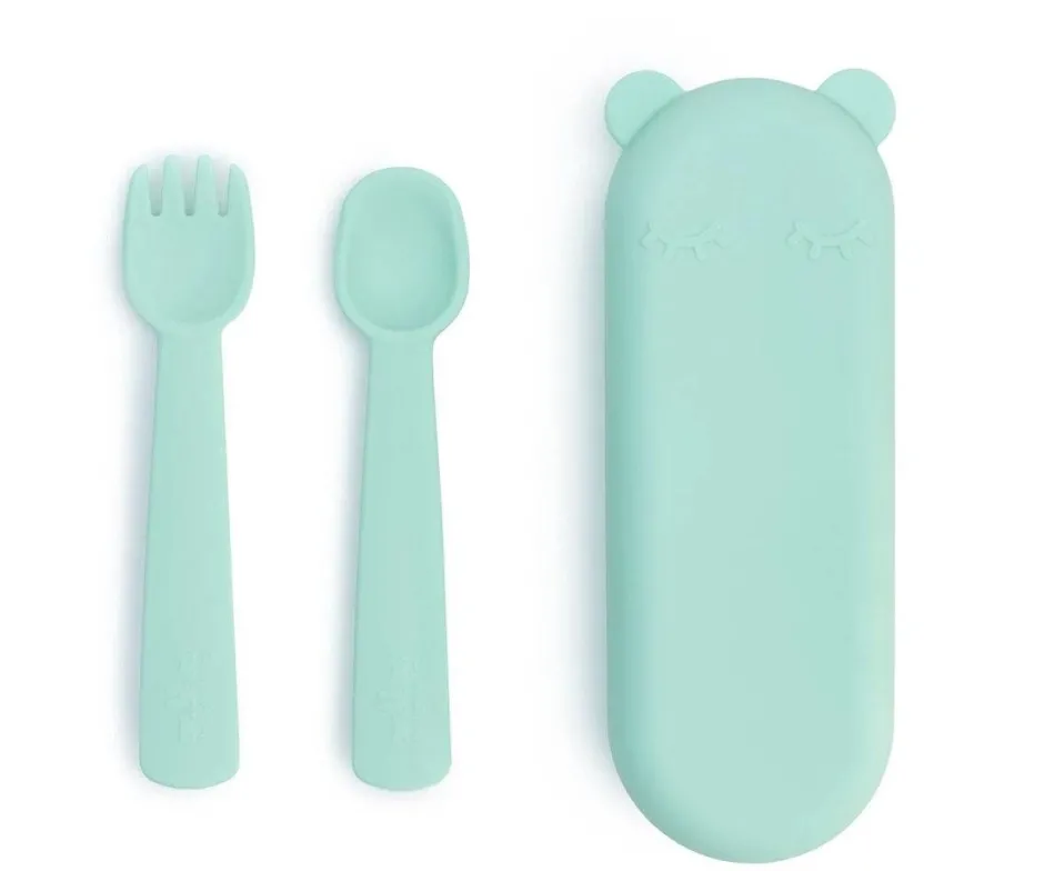 - Incluye: cuchara, tenedor y estuche a juego.